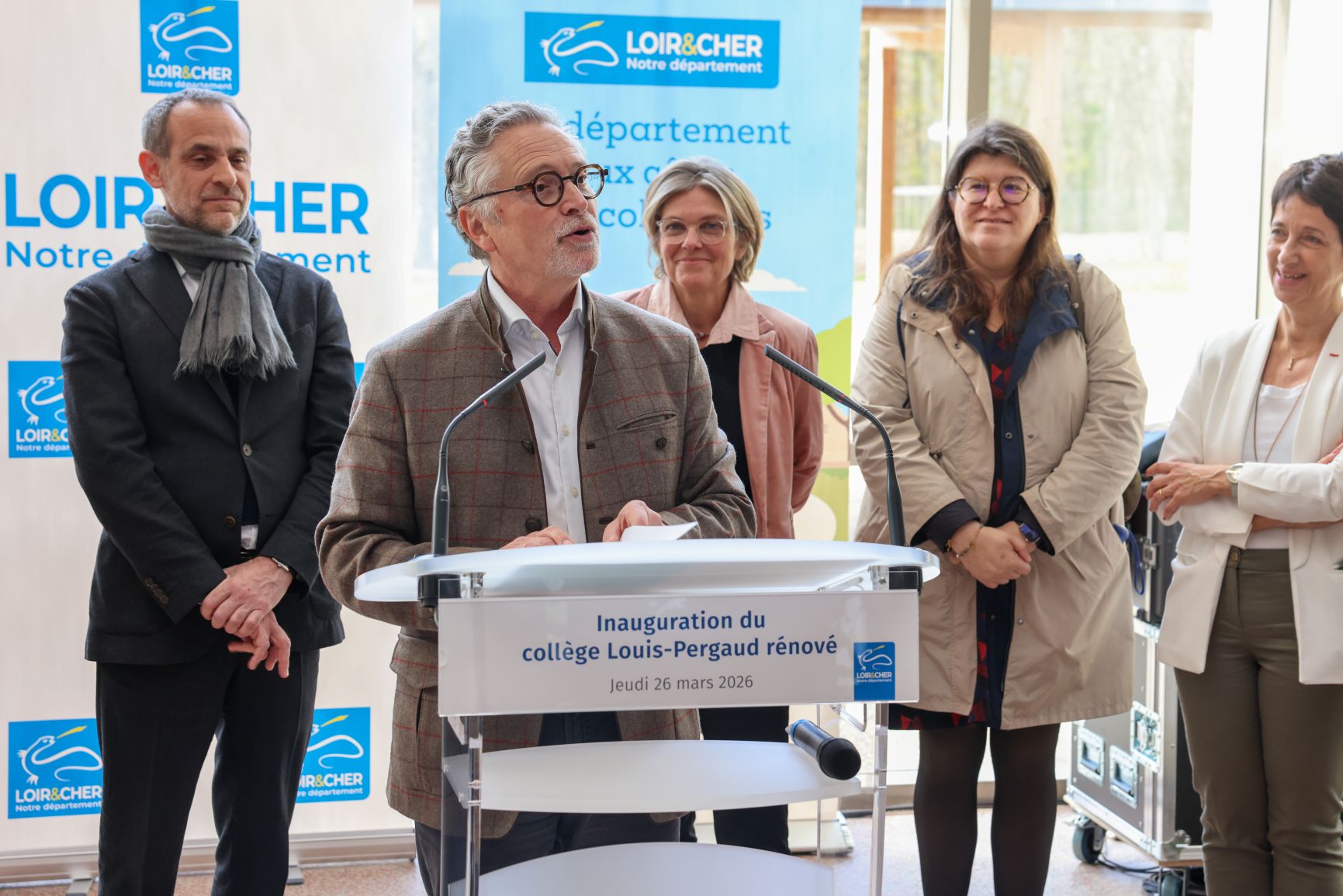 Ce jeudi 26 mars, Philippe Gouet, président du conseil départemental, et Claire Foucher-Maupetit, vice-présidente chargée de l’éducation, de l’enseignement supérieur, des collèges et des bâtiments, ont inauguré, aux côtés de Joseph Zimet, préfet de Loir-et-Cher, et de François Bonneau, président de la région Centre-Val de Loire, les nouveaux bâtiments du collège Louis-Pergaud à Neung-sur-Beuvron.