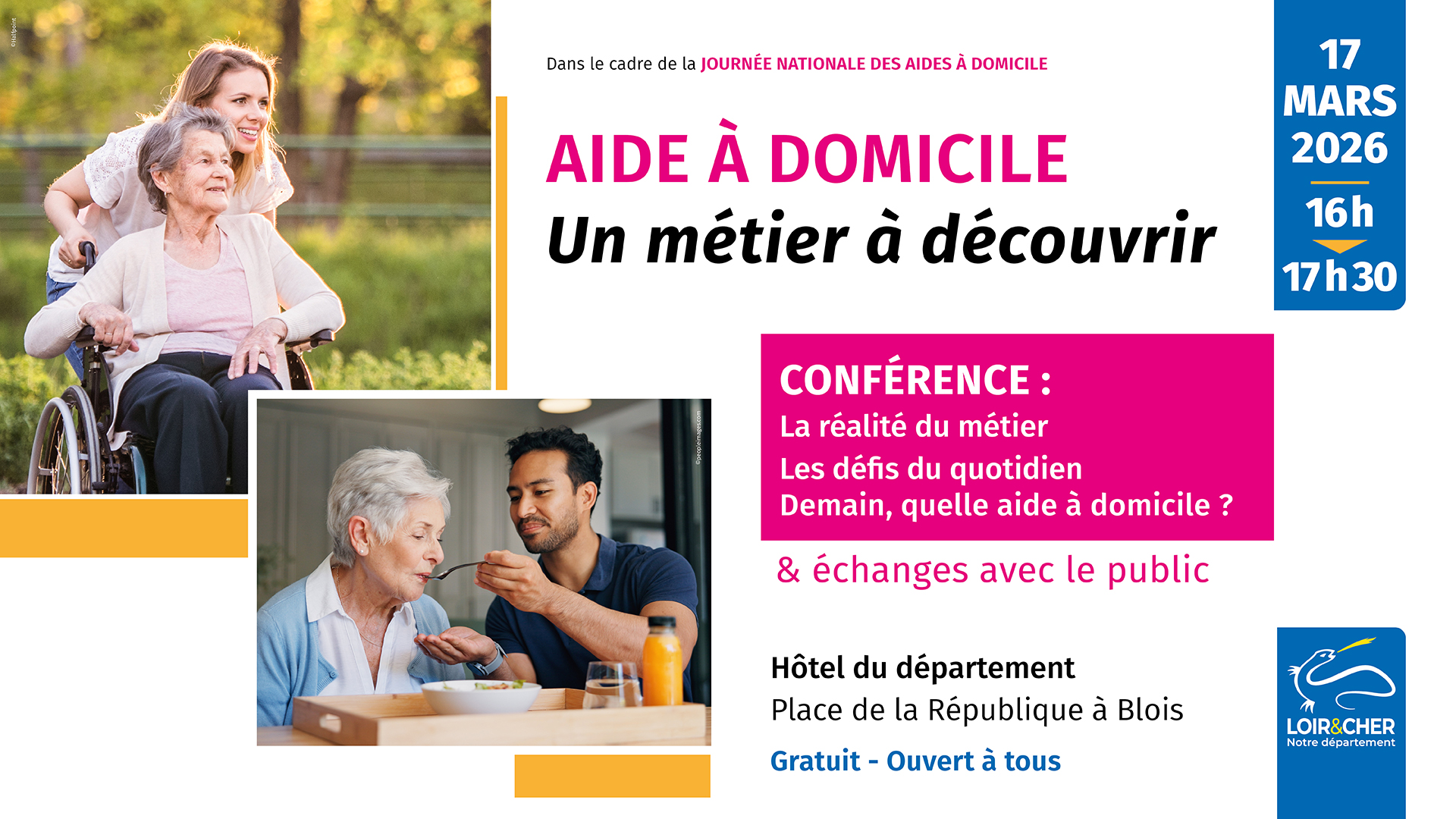 Les aides à domicile permettent, chaque jour, aux personnes âgées ou en situation de handicap de continuer à vivre à leur domicile. La journée nationale des aides à domicile sera l’occasion de les remercier et de leur rendre hommage. Afin de mieux connaître ce métier et ses missions, le conseil départemental vous invite à une table ronde intitulée « Aide à domicile : un métier essentiel au cœur du parcours de vie » à partir de 16h.